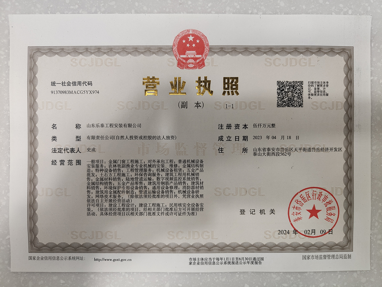 營業(yè)執(zhí)照(副本)